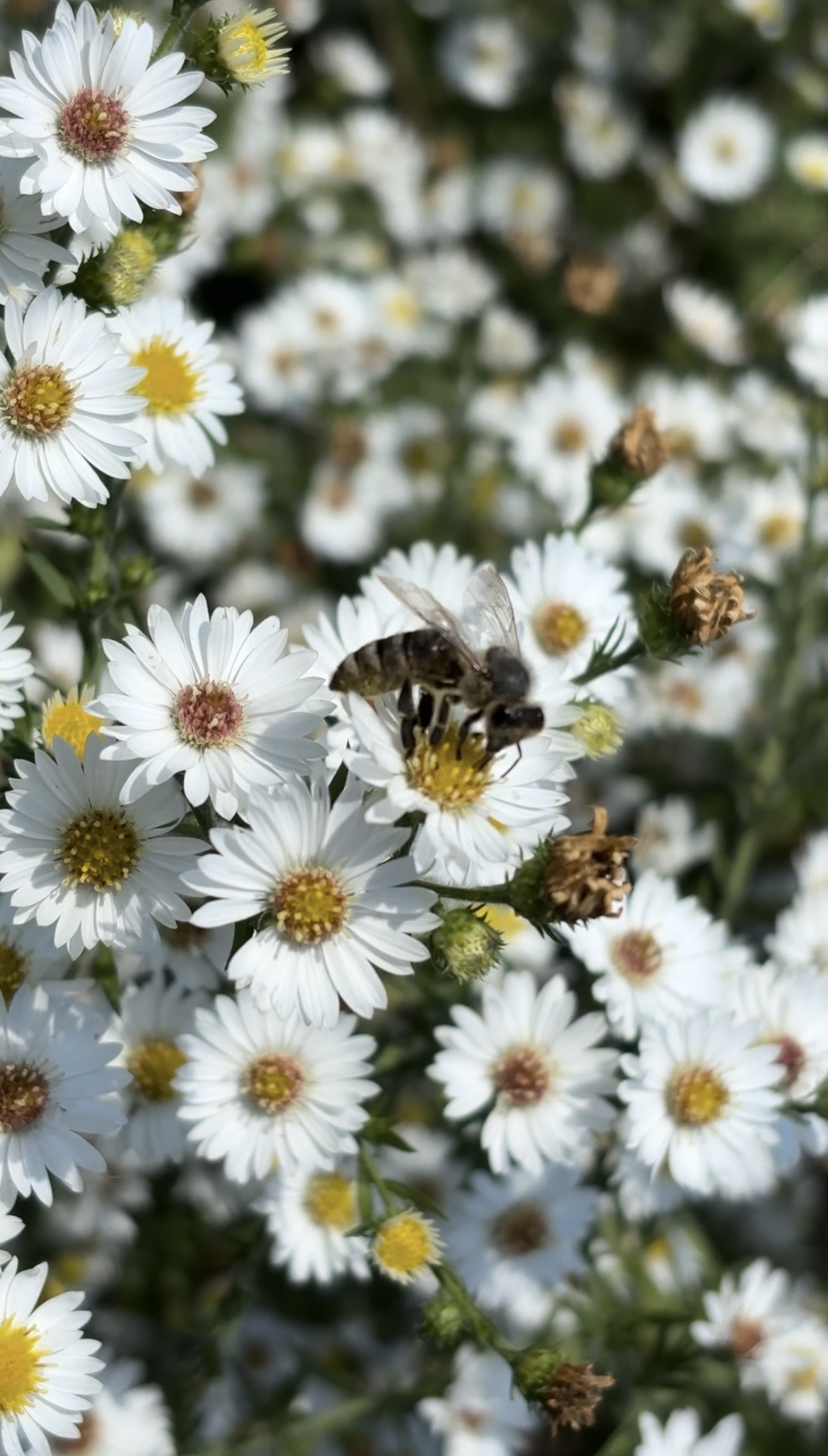 The back yard. When we were kids there were honey bees everywhere. Not so much these days. This one was really busy!