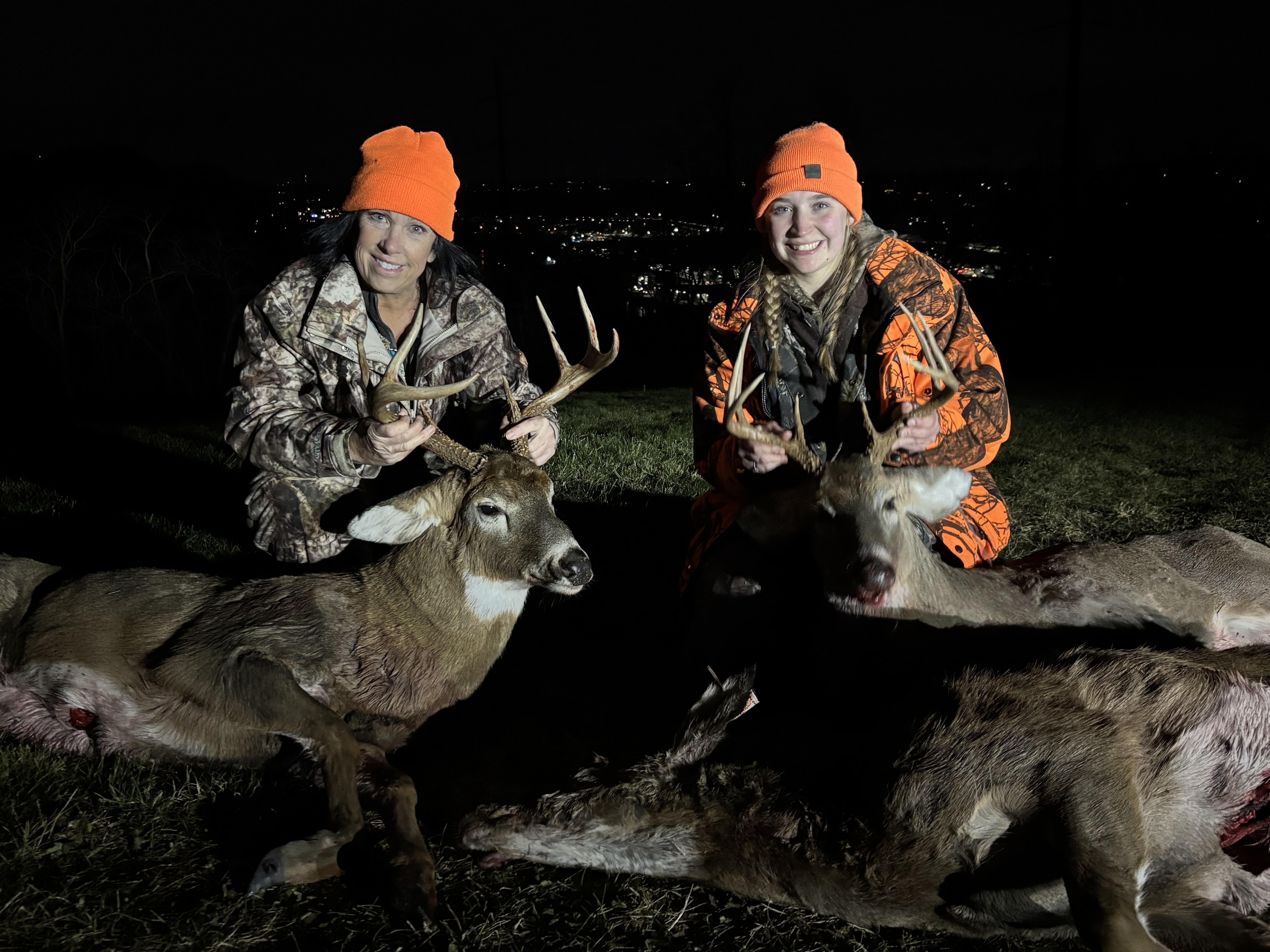Both of these ladies hunted hard during archery season and had some really close calls on some decent bucks but never flung an arrow. Amy on the left got her first buck last year, a small 8 point. She got it during archery season after hunting only 2 days. I pushed it to her as she sat in a small hunting blind chair with her crossbow on a tripod. We were pretty happy. She made a perfect shot and the deer went down on the spot.